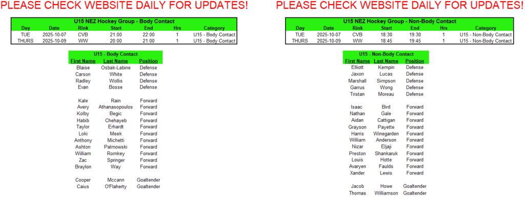 - All players must be properly registered and fees paid before they can skate.